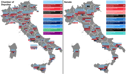 | Italian Socialist Party | 4,206,726 | 14.23 | 84 | +9 | |