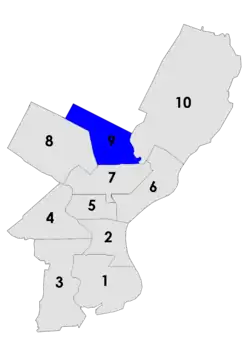 Since 1951, insurance broker Charles M. Finley had represented the 9th district, which covered Oak Lane, Olney, and Logan. In August 1958, he died of a heart attack while vacationing in Margate, New Jersey.[1]