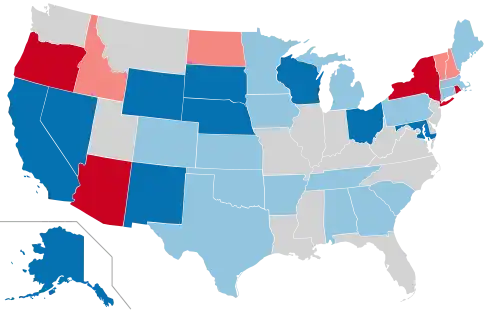 Alaska held a referendum that year about statehood, Proposition 1 on August 26 which was approved.[5][6] Two other related referendums were also held in Alaska that year: Proposition 2 asked whether or not to ratify the state boundaries[7] and Proposition 3 asked whether or not to approve other parts of the Alaska Statehood Act.[8] Propositions 2 and 3 both passed.[6]