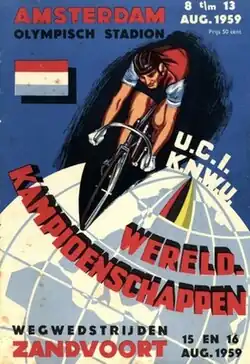 The 1959 UCI Track Cycling World Championships were the World Championship for track cycling. They took place in Amsterdam, Netherlands from 8 to 13 August 1959.[1] Eight events were contested, 6 for men (3 for professionals, 3 for amateurs) and 2 for women.