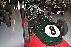 It was the twenty fifth Australian Grand Prix.[2] Alec Mildren won his only AGP, which was also the second AGP victory for a rear-engined racing car. Mildren eschewed the more usual Coventry Climax FPF engine in favour of a Maserati sports car unit to power his Cooper T51, one of many competitors at the time who tried sports car engines in racing car chassis. Davison's Aston Martin DBR4 too had a sports car engine replacing the 2.5-litre powerplant, this being 3.0 litre unit from a DBR1.[3]