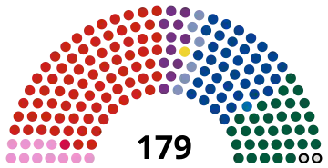 All 179 seats in the Folketing 90 seats needed for a majority |