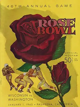 The 1960 Rose Bowl was the 46th edition of the college football bowl game, played at the Rose Bowl in Pasadena, California, on Friday, January 1, 1960, at the end of the 1959 season. This was the first Rose Bowl appearance by the Huskies since 1944 and the first appearance by the Badgers since 1953.[2] This was the first time these two football programs met on the field. The Washington Huskies defeated the Wisconsin Badgers, 44–8.[5][6][7]
