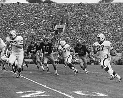 In the rivalry game against UCLA, the Bruins led 3–0 until the fourth quarter, when the Trojans scored two touchdowns.[14] In the final game for Notre Dame head coach Joe Kuharich, USC shut out the 5–4 Fighting Irish at the Coliseum, breaking a five-game losing streak in the annual intersectional rivalry.[15] The Trojans finished ranked number 1 for the first time in the history of the AP poll, and were undefeated for the first time since the twice-tied 1939 team won the Rose Bowl.