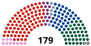 All 179 seats in the Folketing 90 seats needed for a majority |