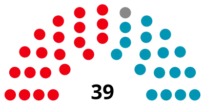 | 1944 | 42.52% (16) | 45.84% (20) | 6.64% (3) | 5.00% | 53.3% | 46.7% | |||