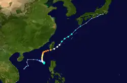 - ^ "Typhoon 196629 (Kathy) – Detailed Track Information". Japan Meteorological Agency. National Institute of Informatics. July 16, 1991. Retrieved March 12, 2015.