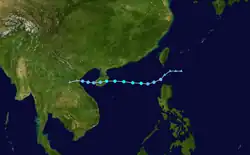 Severe Tropical Storm Fran, designated as "Mameng" by PAGASA, originated in the western Pacific on July 30 near the South China Sea. The storm tracked steadily westward over the next two days. By July 31, Fran intensified, reaching its peak intensity with sustained winds of 70 mph (110 km/h) and a minimum pressure of 975 hPa. Maintaining a consistent westward trajectory, Fran approached China's southern coast by August 2. At 18:00 UTC, it made landfall south of Guangdong Province as a weakening tropical storm. The system rapidly deteriorated over land, downgrading to a tropical depression within 12 hours. By August 3, Fran dissipated inland.