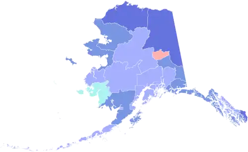 ![]() ![]() Gravel: 40–50% 50–60% 60–70% Rasmuson: 40–50% Gruening: 30–40% | |||||||||||||||||||||