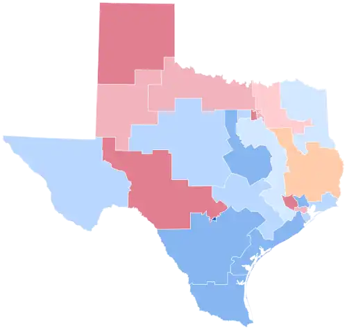Humphrey won 13 out of the 23 congressional districts in Texas, Nixon won 9, including six held by Democrats, and Wallace won 1, which was held by a Democrat.[12]