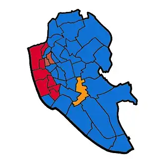 ![]() Map of Liverpool showing wards won (first placed party)[1] | ||