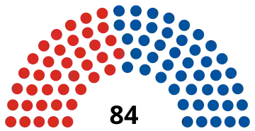84 seats in the Parliament 43 seats needed for a majority | |||||||||||||||||||||||||||||||||||||