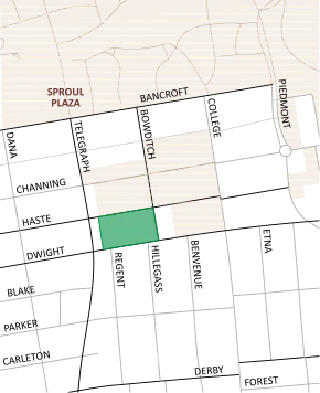 ![]() The green area represents People's Park and the brown patterned area represents University of California, Berkeley property. | |||