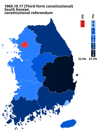 A constitutional referendum was held in South Korea on 17 October 1969.[1] The changes to the constitution were approved by 67.5% of valid ballots, with a turnout of 77%.[2]