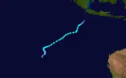 | Peak intensity | 155 km/h (100 mph) (10-min); 959 hPa (mbar) |