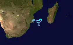 Fabienne existed from February 11 to February 25. On February 18, Fabienne passed just west of Rodrigues, producing wind gusts of 254 km/h (158 mph). The storm caused two fatalities on the island, as well as 16 injuries.[4][5][6]