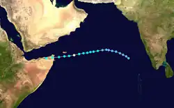 A tropical cyclone moved through the Arabian Sea near the end of October.