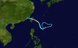 | Faye (Krising) | October 4 – 15 | Severe tropical storm | 985 hPa (29.09 inHg) | Philippines | Unknown | 13 | ||