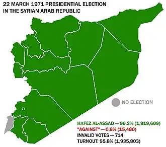 Presidential elections were held in Syria on 12 March 1971.[1] There was only one candidate, Hafez al-Assad, with voters asked to approve or reject his candidacy. A reported 99% of voters voted in favour, with a turnout of 95%.