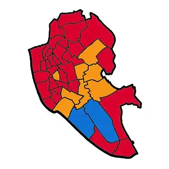 ![]() Map of Liverpool showing wards won (first placed party)[1] | ||