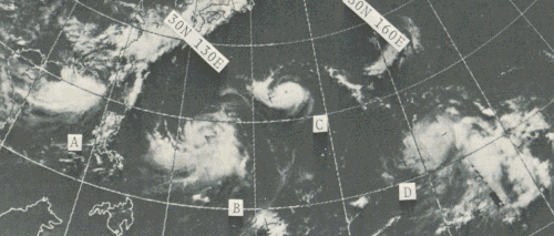 The northern hemisphere part of a "cyclone twin" developed into a tropical depression west of Kwajalein on May 29. It headed west and slowly strengthened. As it turned to the northwest and then the north northeast, it reached its maximum intensity on June 5. It continued heading north northeast, steadily weakened, and went extratropical on June 7.[3]
