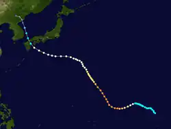 | Ida | September 16–26 | Typhoon | 205 km/h (125 mph) | 930 hPa (27.46 inHg) | None | None | None | |