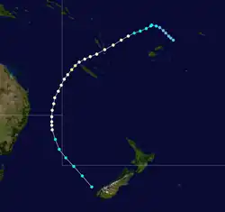 This storm initially formed as Natalie, then moved into the Australian region on the same day. Later, it moved back into the South Pacific and was renamed Lottie.[1] High seas caused the ship Uluilakeba to capsize killing more than 85 people.[2][3] This makes Lottie one of the deadliest tropical cyclones in region in recent decades.[4]