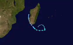 | Alice | September 14 – 24, 1973 | Moderate tropical storm | 75 km/h (45 mph) | 1000 hPa (29.53 inHg) | Madagascar | None | None | [3] |