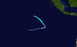 During 19 November, a tropical disturbance was first noted, while it was located within the Australian region about 500 km (310 mi) to the north of Brisbane, Australia.[14][15] Over the next couple of days, the system moved north-westwards into the South Pacific basin towards New Caledonia, before it recurved south-eastwards and was last noted during 25 November after it had moved back into the Australian region.[14][16]