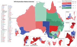 ![]() Results by division for the House of Representatives, shaded by winning party's margin of victory. | |||||||||||||||||||||||||||||||||||||||||||