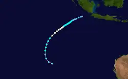 | Peak intensity | 155 km/h (100 mph) (10-min); 954 hPa (mbar) |