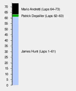 It seemed Hunt was on for an easy win, but as the track began to dry he started to lose positions. He only needed a fourth place finish to win the title, because of Lauda's retirement. On lap 62 Hunt fell behind Depailler and Andretti, but two laps later Depailler's left rear tyre started to deflate and he had to pit. Andretti took the lead, but then Hunt had a similar tyre problem. Hunt pitted, dropped to fifth and set off after Depailler, Alan Jones and Regazzoni. Depailler overtook both drivers on lap 70 and on the next lap Hunt did the same and overtook both of them in order to win the World Drivers' Championship. There was brief confusion as the immediate unofficial finish marked him as fifth place, but with quick deliberation the official finish was third. Ferrari won the Constructors' Championship despite Lauda's retirement.