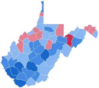 | Monongalia | 16,163 | 57.75% | 11,827 | 42.25% | 4,336 | 15.50% | 27,990 |