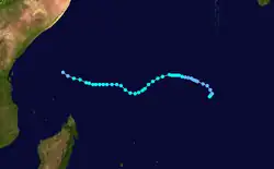 On January 8, Clarence passed near St. Brandon, producing high waves that destroyed four boats and several homes. Wind gusts on the island reached 169 km/h (105 mph). For several days moved in a counterclockwise track around the Mascarene Islands, producing high waves and beneficial rainfall on Réunion.[2]