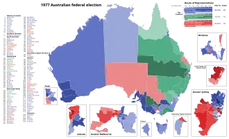 ![]() Results by division for the House of Representatives, shaded by winning party's margin of victory. | |||||||||||||||||||||||||||||||||||||||||||