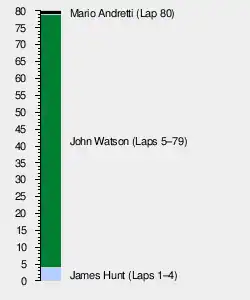 The 80-lap race was won by American driver Mario Andretti, driving a Lotus-Ford, after he started from pole position. Northern Irishman John Watson led for most of the race in his Brabham-Alfa Romeo, before Andretti passed him on the final lap. Watson finished 1.55 seconds behind the American, with Englishman James Hunt third in his McLaren-Ford.