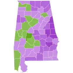 Fob James won all but two counties: Cullman, where Hunt had been Probate Judge; and Winston, a traditionally Republican stronghold.[6]