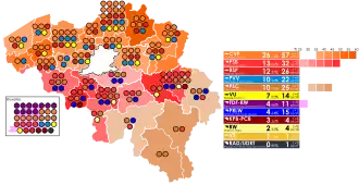 Party Votes % Seats +/– Christian People's Party 1,420,777 25.93 29 +1 Belgian Socialist Party (Wallonia) 685,307 12.51 17 –2 Belgian Socialist Party (Flanders) 678,776 12.39 13 +1 Party for Freedom and Progress 572,535 10.45 11 +2 Christian Social Party 535,939 9.78 12 +1 People's Union 384,562 7.02 7 –3 Party of Reforms and Freedom of Wallonia-PL 330,155 6.03 6 -1 Democratic Front of the Francophones 266,713 4.87 7 New Communist Party of Belgium 182,711 3.33 1 0 Walloon Rally 123,794 2.26 2 0 Vlaams Blok 80,809 1.47 0 New Democratic Union for the Respect of Labour 51,571 0.94 0 New All Power to the Workers 44,379 0.81 0 New Ecolo 43,883 0.80 0 0 Belgian Socialist Party (Luxembourg) 30,837 0.56 1 New Party of German-speaking Belgians 11,148 0.20 0 0 Walloon Liberal Party 11,081 0.20 0 New Walloon Rally (Luxembourg) 6,659 0.12 0 New Revolutionary Workers' League 3,744 0.07 0 New Liberal, Social and Democratic Party 3,239 0.06 0 New Belgian Progressive Party 2,804 0.05 0 New Francophone Liberal Party 2,640 0.05 0 New Democratic and Progressive Union 2,221 0.04 0 0 United Feminist Party 2,045 0.04 0 0 Revolutionary Communist Party 917 0.02 0 New Total 5,479,246 100.00 106 0 Valid votes 5,479,246 90.65 Invalid/blank votes 565,299 9.35 Total votes 6,044,545 100.00 Registered voters/turnout 6,366,655 94.94 Source: Belgian Elections[ 6]