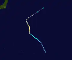 | Peak intensity | 150 km/h (90 mph) (10-min); 955 hPa (mbar) |