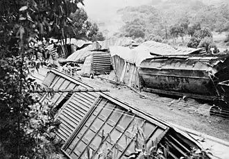 ![]() The derailment of a freight train, caused by the earthquake | |