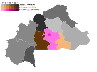 | Macaire Ouédraogo | National Union for the Defence of Democracy | 254,465 | 25.22 | 552,954 | 43.72 |