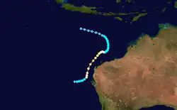 Formed on 3 November, just south of Selat Mentawai then moved southwestward before reaching a peak intensity of 110 knots (130 mph; 200 km/h) and a minimum pressure of 940.0 hectopascals (27.76 inHg) on 8 November. On 12 November the storm began to move northwestward and two days later dissipated over the open Indian Ocean.