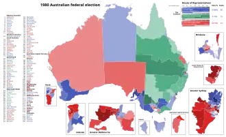 ![]() Results by division for the House of Representatives, shaded by winning party's margin of victory. | |||||||||||||||||||||||||||||||||||||||||||