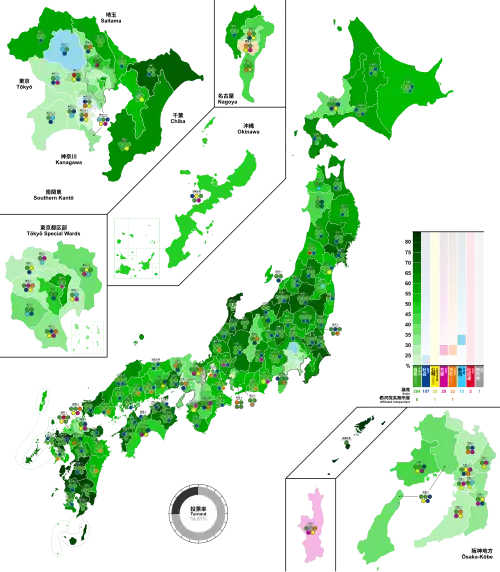 For the first time, the election for the House of Representatives was held in conjunction with the election for the House of Councillors on the same day.