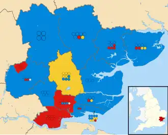 All 98 seats to Essex County Council 50 seats needed for a majority | |||||||||||||||||||||||||||||||||||||||||||||||||||||