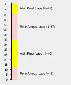 Turbocharged cars took the first six positions on the grid. Despite Alain Prost suffering a puncture while leading, he was able to recover to win the race. Lauda, in his first race after two years out of F1, finished fourth. It was the final podium and points finish for Carlos Reutemann (as of 2024, this is the most recent podium finish achieved by an Argentine driver), who retired from Formula One after the next race in Brazil, and the last point finish for an Argentine driver until Franco Colapinto finished 8th and scored 4 points at the 2024 Azerbaijan Grand Prix.[2] It also was the last race held in January.