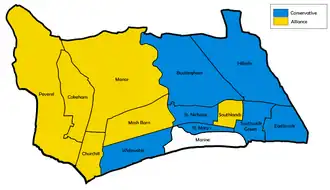The election resulted in the Alliance losing control of the council to no overall control.[2][3]