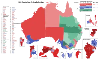 ![]() Results by division for the House of Representatives, shaded by winning party's margin of victory. | |||||||||||||||||||||||||||||||||||||||||||