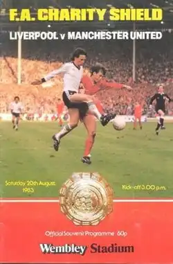 The 1983 FA Charity Shield was the 61st FA Charity Shield, an annual football match played between the winners of the previous season's First Division and FA Cup competitions. The match was played on 20 August 1983 at Wembley Stadium and contested by Liverpool, who had won the 1982–83 First Division, and Manchester United, who had won the 1982–83 FA Cup. Manchester United won 2–0 with a brace from captain Bryan Robson. It was Liverpool's first competitive game under the management of Joe Fagan, who had been promoted from the coaching staff to replace the retiring Bob Paisley.