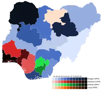 Presidential elections were held in Nigeria on 6 August 1983. The result was a victory for incumbent Shehu Shagari, who received 48% of the vote.[2][3] His National Party of Nigeria won the parliamentary elections held later in the month.[4]